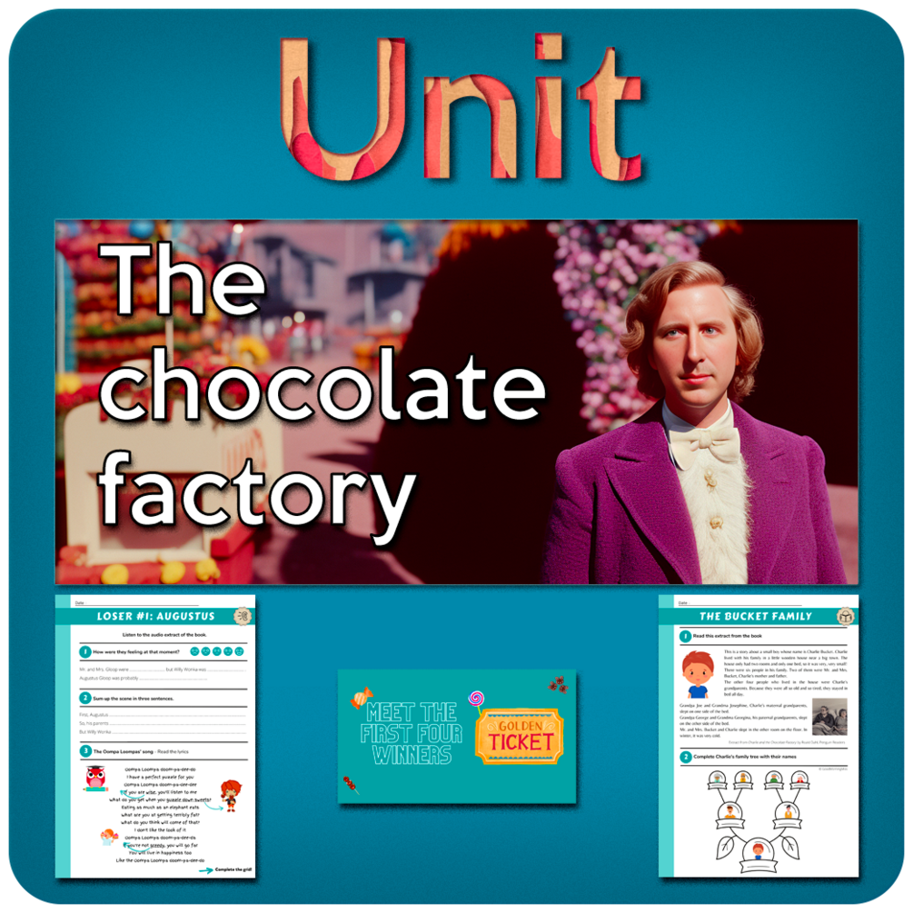 This unit is ready to use, there is not much for you to add: it’ll save you a lot of preparation time! You don’t need to buy the book or the film. The unit is about the complete story of Charlie and the other 4 children but it is not a book companion.